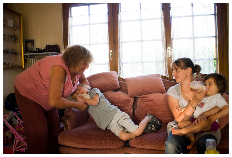 A 39 ans Elise mène une vie bien remplie et heureuse avec Alexandre et leurs deux enfants entendants. Isidore avait 4 ans et demi et Eléonore avait 1 ans et demi. Elise et Alexandre savent lire sur les lèvres, même s’ils sont plus a l’aise en langue des signes. Ils mélangent sans y penser les deux langues avec leurs enfants. La famille habite dans un village du nord de la France. la maison est ultraéquipée pour parer à toutes les éventualités : la sonnette du portail, et le réveil sont reliés à des voyants lumineux. Alexandre est électrotechnicien dans une entreprise Belge. Elise est podologue. Elle dépose les enfants chez mamie Francine qui habite à coté de l’école et s’occupera de Eléonore toute la journée. Le couple ne manque ni d’esprit ni d’humour. L’esprit battant de ces deux la vient de loin. Elise a été plusieurs fois championne de France volley ball sourd et Alexandre a pratiqué de nombreux sports dont le snow board. J’ai suivi dans le cadre de ce 24 heures avec, la vie et l’organisation de ce couple avec leurs deux enfants entendants.